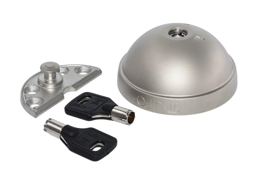 Das Sicherheitsschloss für Ihren LKW und Transporter. Das Sicherheitsschloss UFO von Meroni wirkt Einbrüchen in Ihren Firmenwagen bzw. Kleintransporter optimal entgegen und schützt somit Ihr wertvolles Werkzeug oder anderes teures Firmeneigentum. Das Ufo Sicherheitsschloss kann problemlos an Schiebe- und Hecktüren angebracht werden und überzeugt durch seine einfache Montage und anspruchsvollen Sicherheitsstandards.
