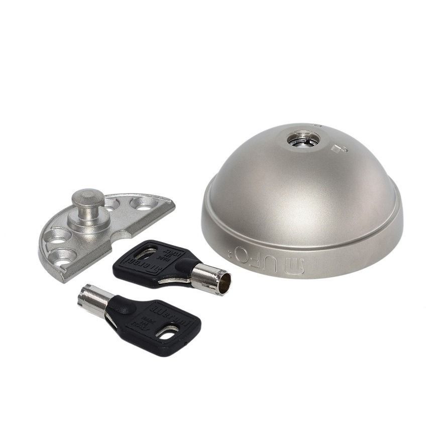 Das UFO² Sicherheitsschloss besteht aus einer Schale aus Zamak und Edelstahlplatten sowie einer glänzenden Nickel Polierung/Lackierung. Der zertifizierte Sicherheitszylinder ist mit einem Aufbohr- und Pickingschutz versehen und wirkt dem Aufbrechen und Aufbohren ihres Lieferwagens optimal entgegen.